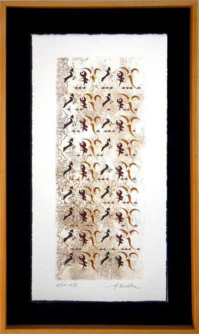 Sur la gravure ci-dessus, sont présents tous les codes d'écriture les plus chers à Hakim Beddar : l'oiseau symbolisant le ciel, l'envol, la naissance, l'écriture, geste mécanique d'un langage intérieur, la couleur de la terre, du désert, le grain de la matière, et la flèche témoin de sa route, son échappée vers la désignation de l'être.