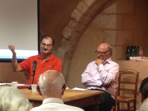 Michel Julliard et Michel Butor avec la rose de l'amitié, sur la photo de gauche. Sur la photo de droite, Armand Dupuy, Françoise Giraud, Michel Julliard, Thierry Lambert, Claire Deville, Michel Butor, Laurent Né 32ème Rencontre le vendredi 16 mai 2014 TROIS temps forts dans cette première journée à Villefontaine: 1- au Siège social lecture collective d'un extrait de "Stravinsky au piano" de Michel Butor 2- Salle des mariages de Villefontaine, spectacle d'improvisation des associations Cas'Planches et Il était une fois autour du livre "Mobile" de Michel Butor; suivi d'un brunch offert par la Mairie de Villefontaine; 3- Projection au cinéma Le Fellini du film de Thésée "Rencontres avec les lettres"avec la participation des poètes de la Cave Lttéraire en présence du Conseil Général de l'Isère, suivi d'un verre de l'amitié offert par l'association 81/2 pendant la vente / signature des livrets DVD.